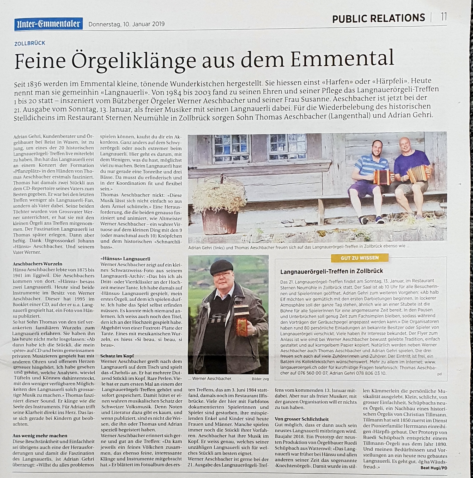 - Geglückter Neustart: 21. Langnauerörgeli-Treffen in Zollbrück, erschienen in der Zeitschrift Schweizer Volksmusik 3/2019 PDF